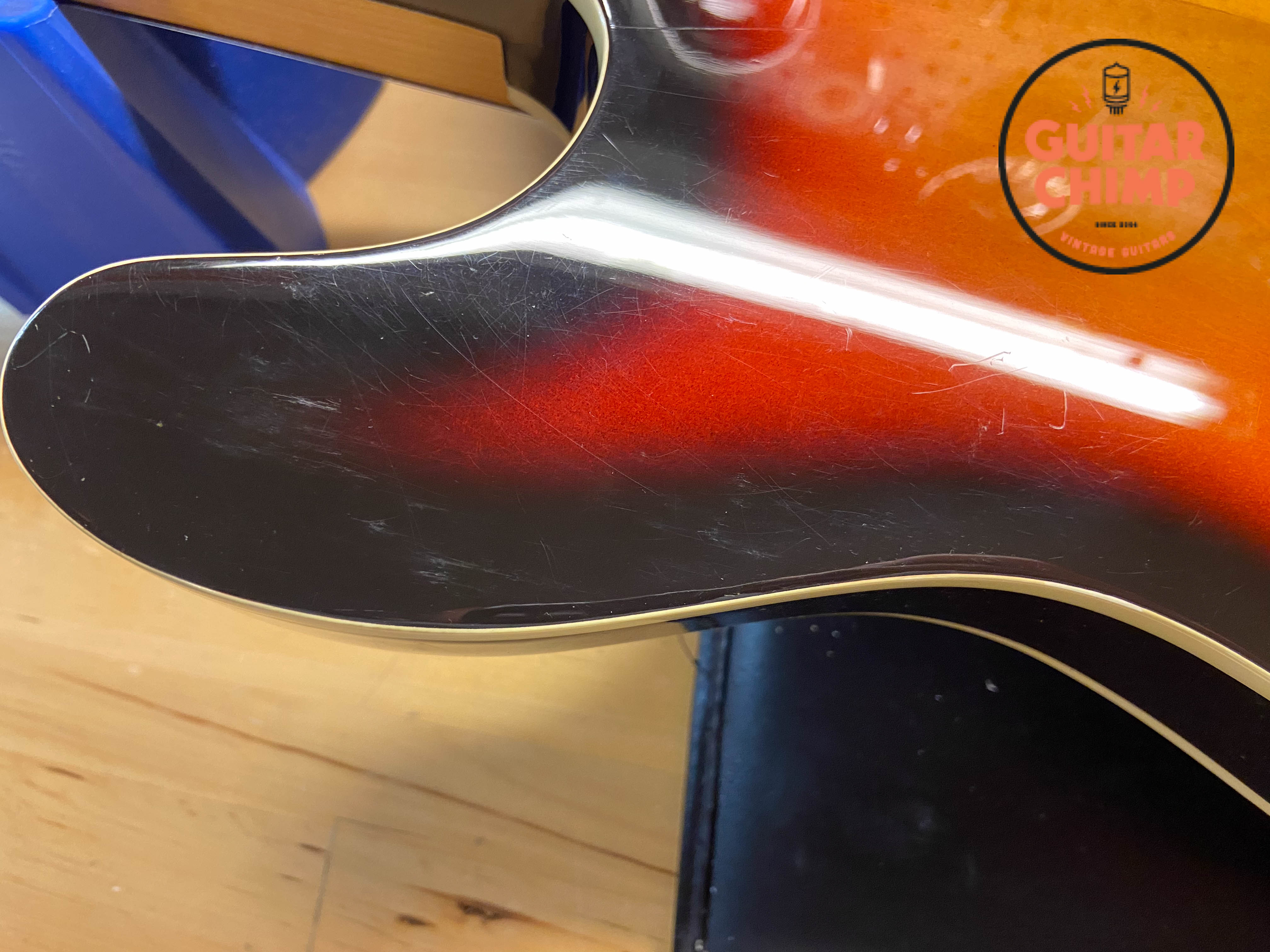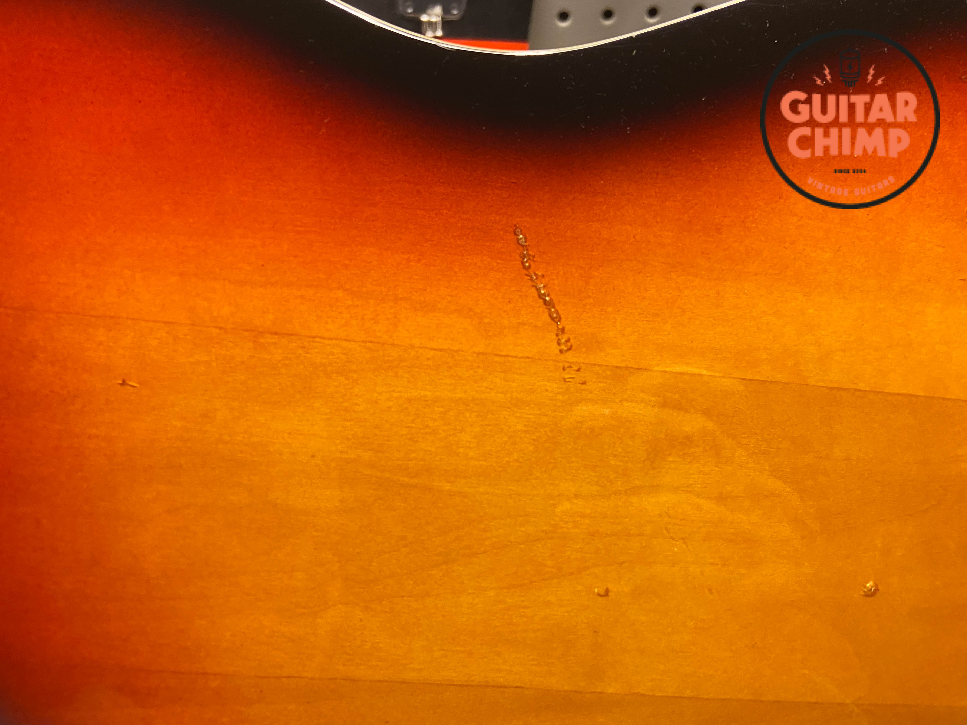 • Scratches, dings, and finish checking at the neck joint (see photos)