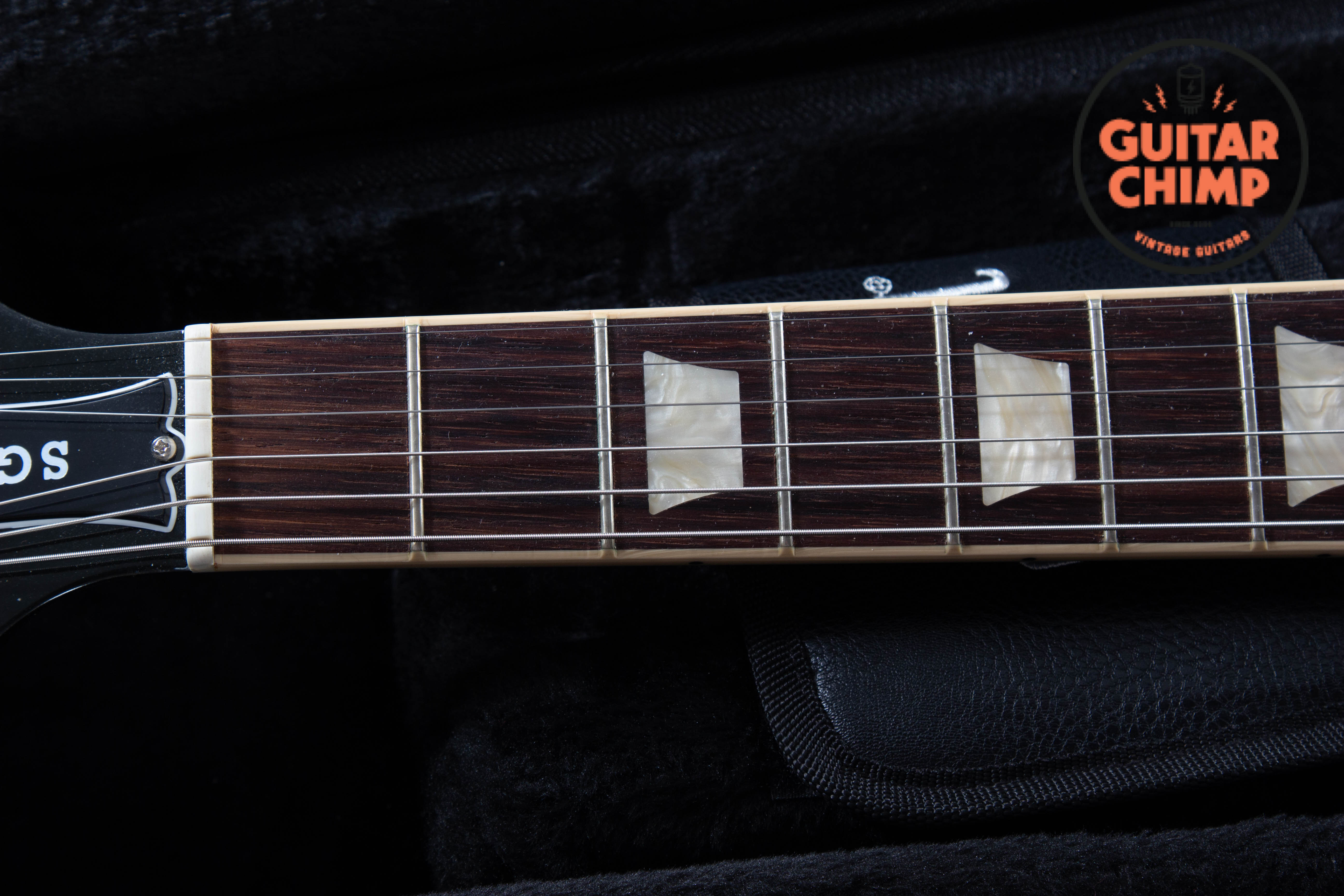 This SG has everything players love about the Standard model—punchy mids, singing sustain, and a lively, lightweight body. The rounded neck profile is comfortable without being bulky, and the 490R/490T humbuckers deliver classic Gibson warmth with great clarity.