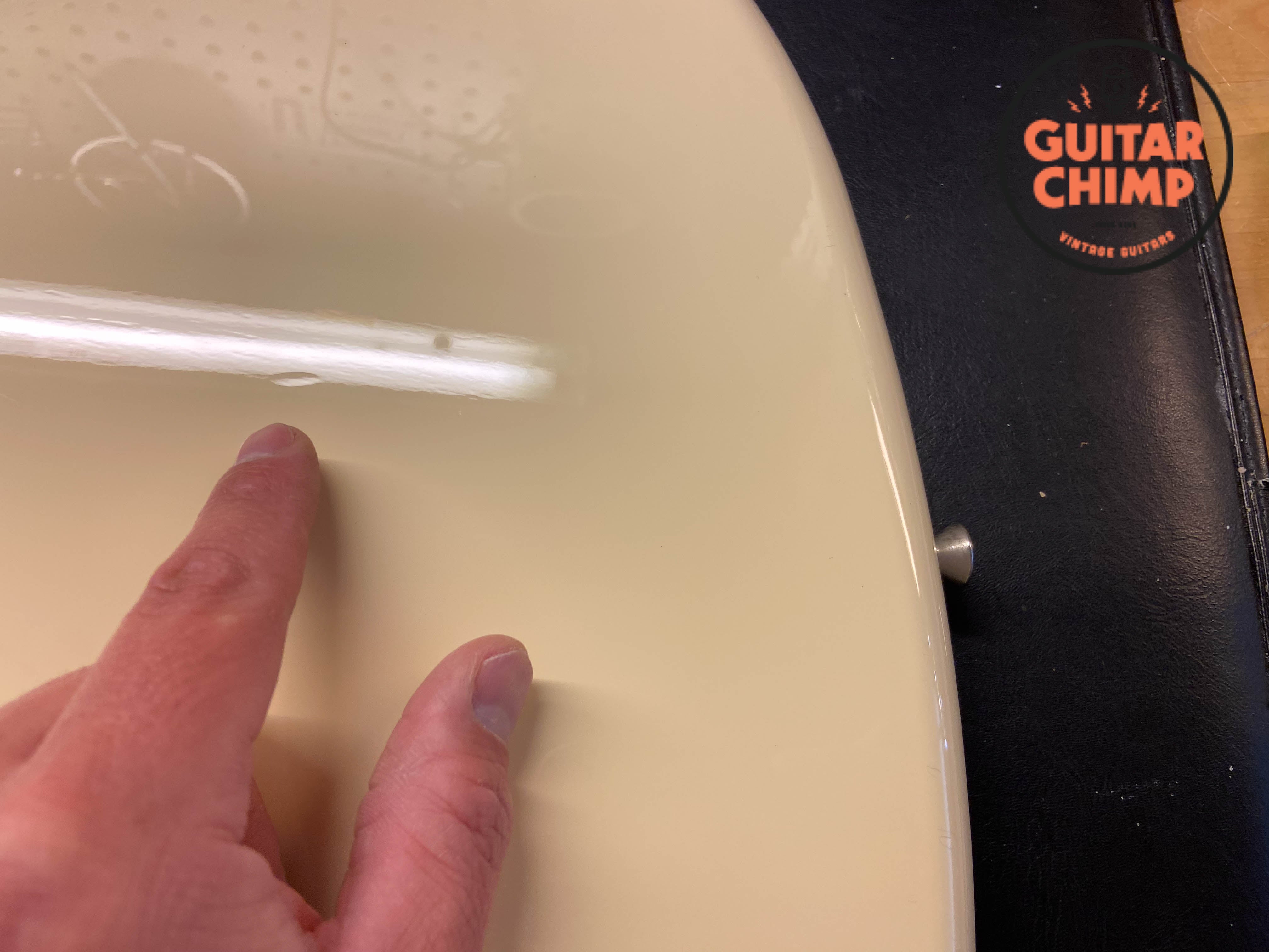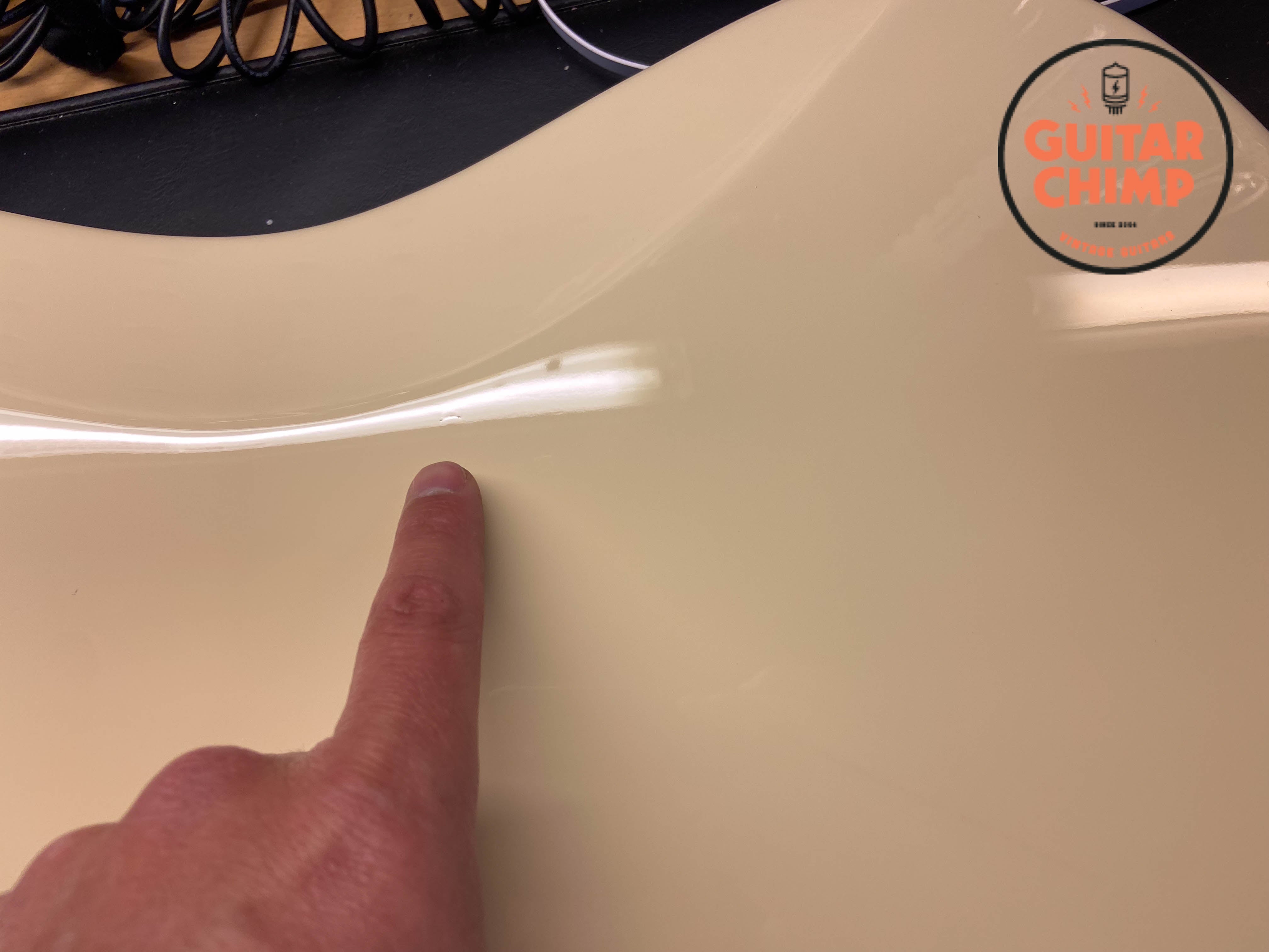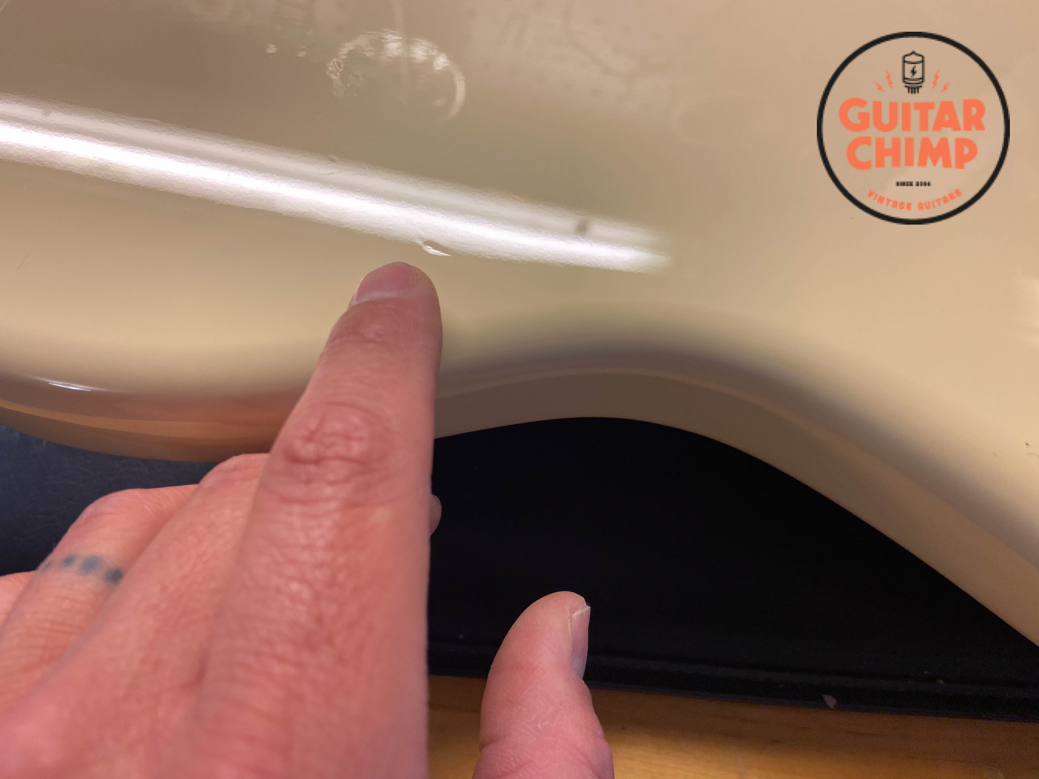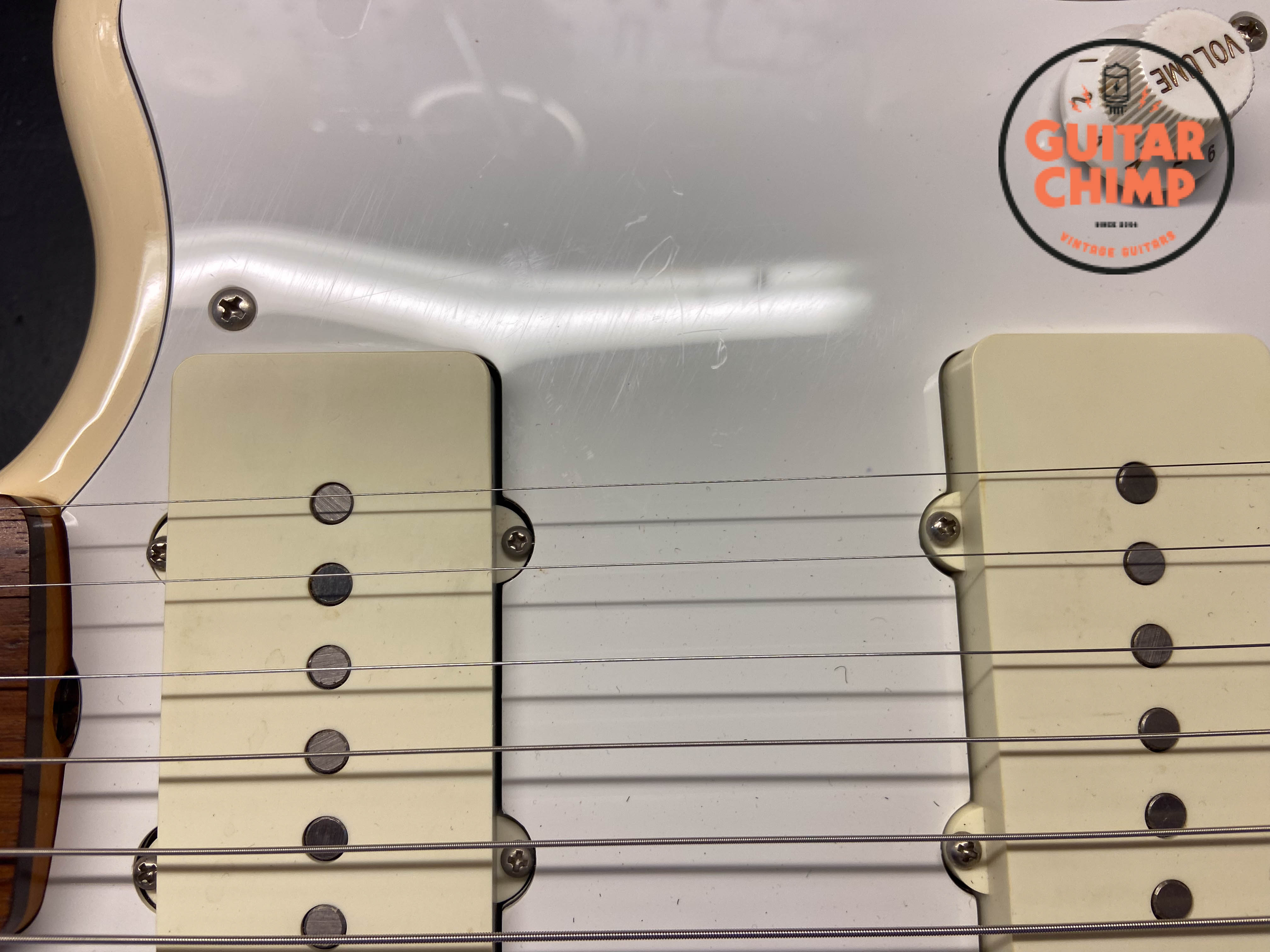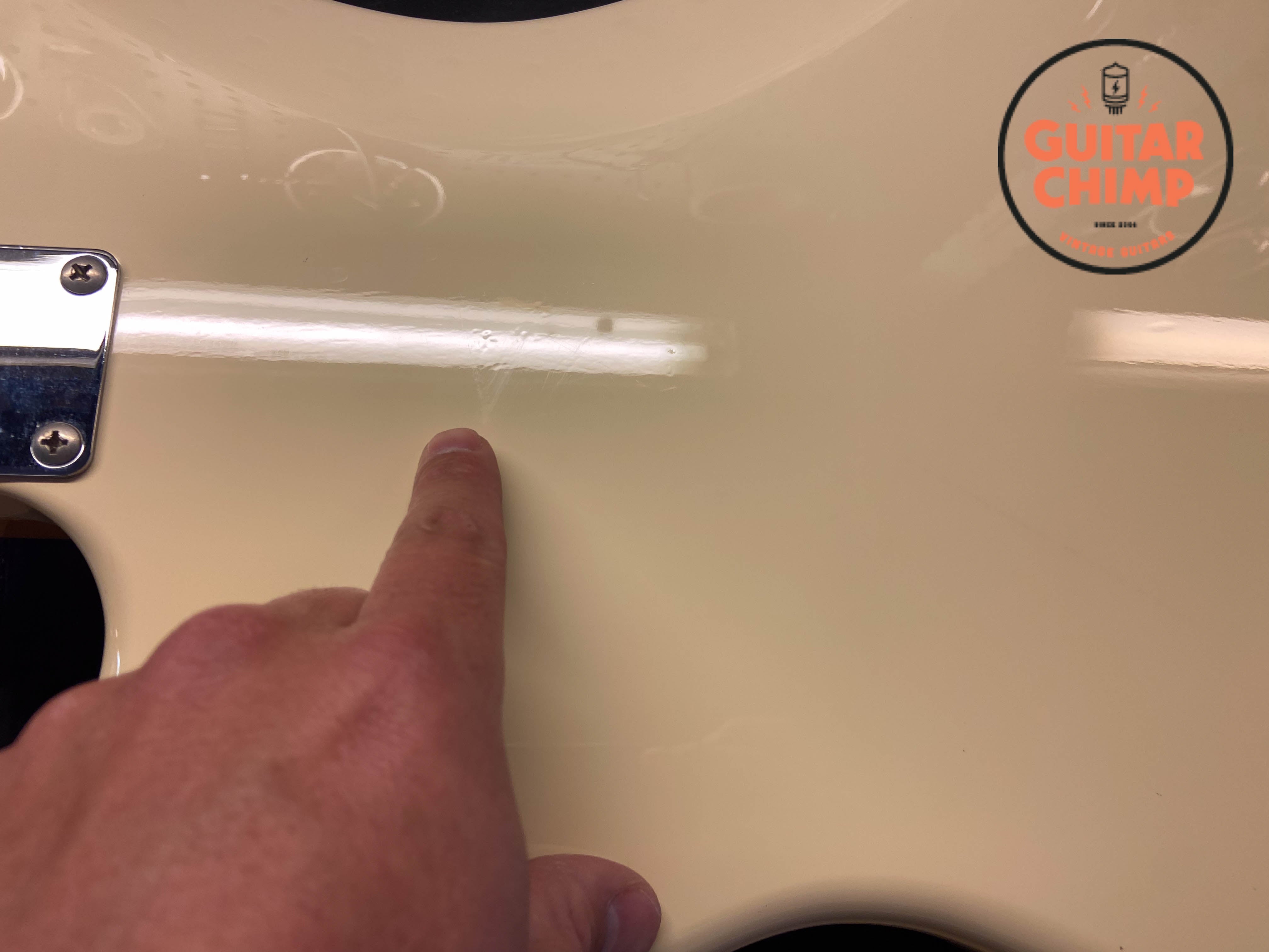 All original with the exception of the pickguard. The stock tortoise shell guard was replaced with a white one, which perfectly complements the Vintage White finish for a clean, classic look.