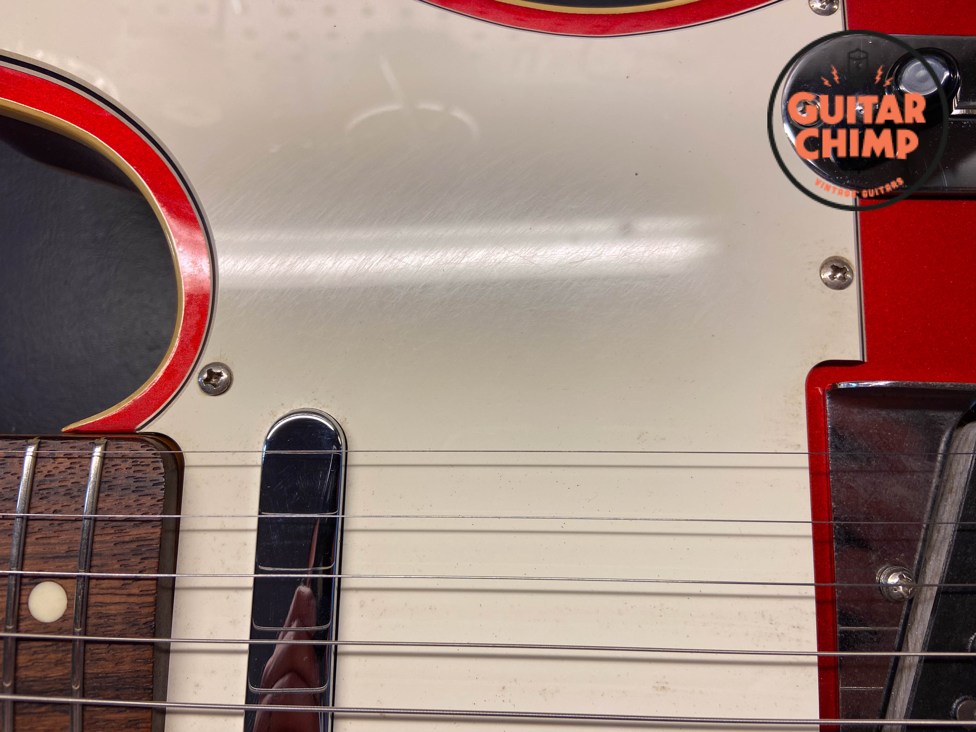 To accommodate the 6 saddles, a few extra holes were made on the underside of the original bridge plate (barely noticeable and does not affect tone or playability).