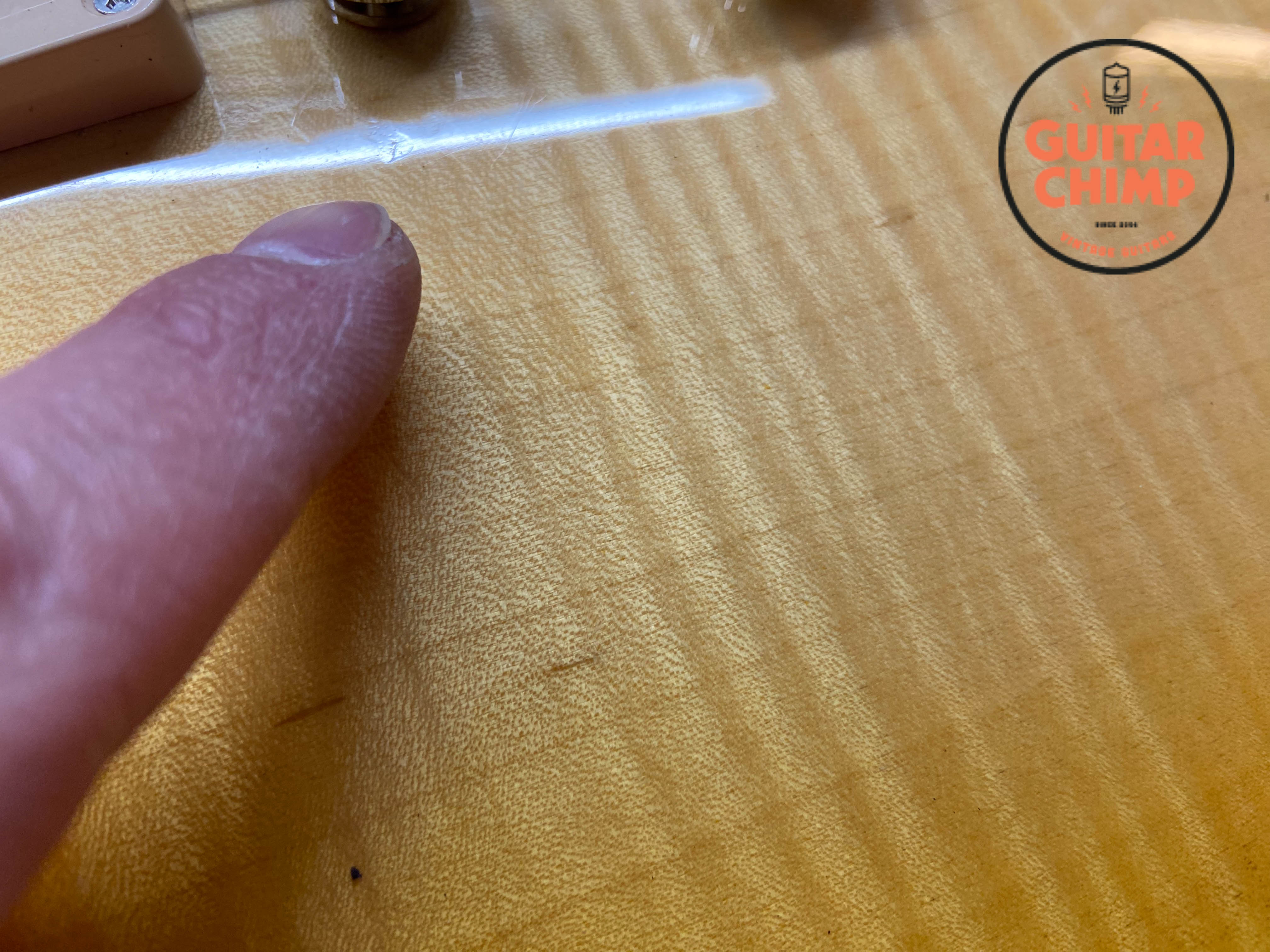 • Light scratches and a few dings, mostly located around the bridge , and small crack on neck pick-up ring(see photos).