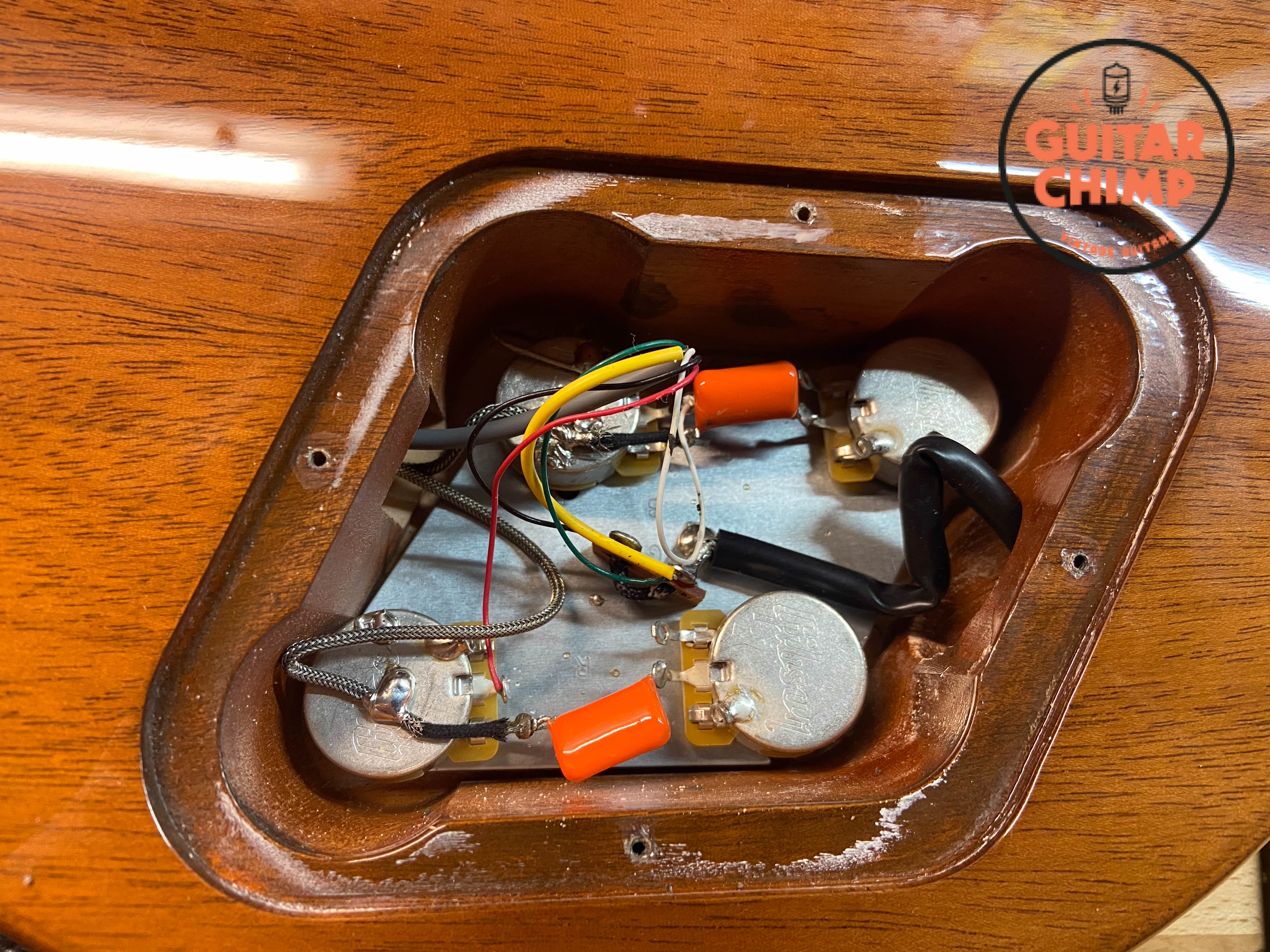 Electronics: 2 Vol / 2 Tone, 3-way toggle, Orange Drop capacitors